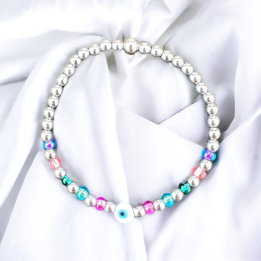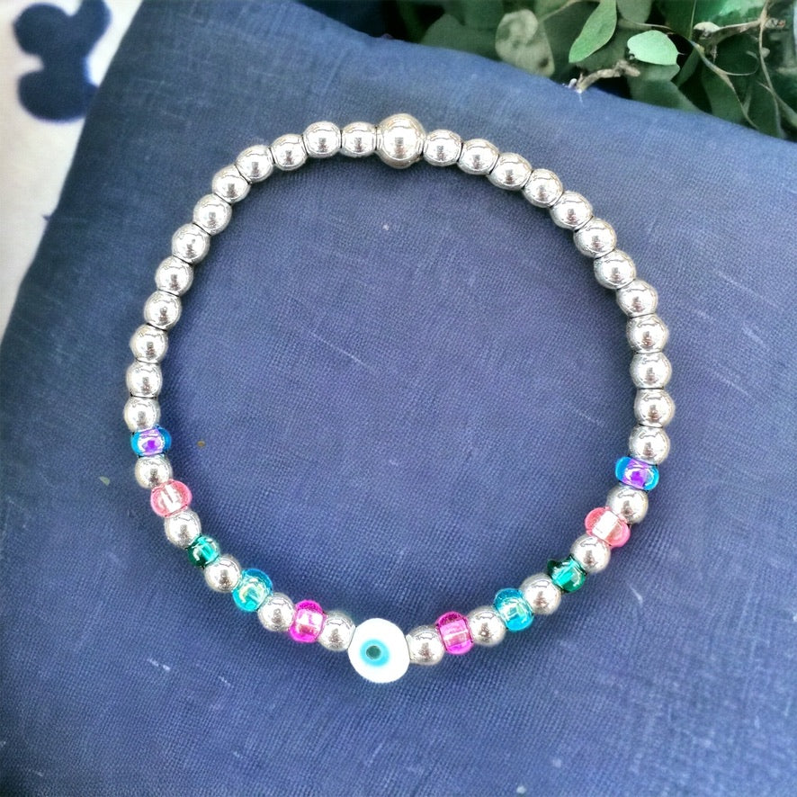This silver-tone Evil Eye bracelet is pure joy — made to stack, gift, or wear every day for a little extra luck.